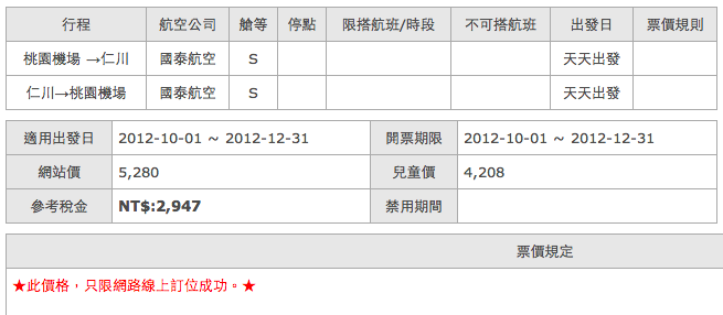 有一些使用限制要注意點進去看一下,要特別注意的是上面列出的票價是沒有含稅金的,點進去才看得到噢!