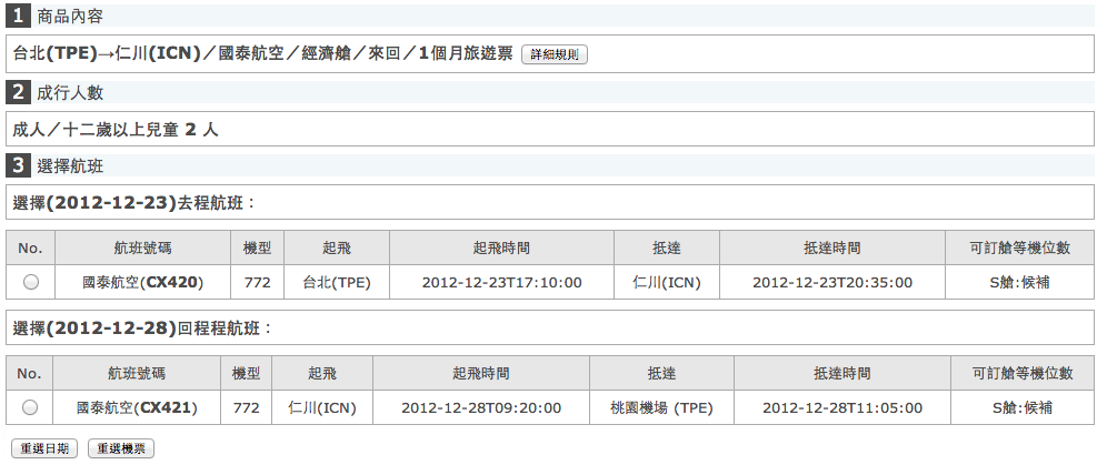 最後確認的時候就可以看到航班、時間囉!當初在訂票時也常看到「候補」的字樣,非常慌張,幸好到最後都有訂到啊!